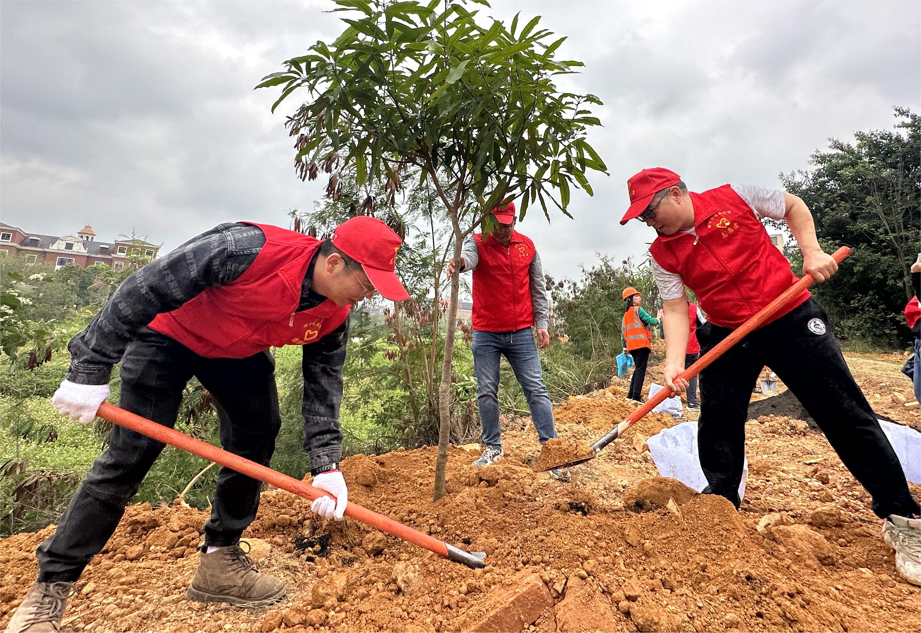 風和日暖,萬物生長,正是植樹添綠好時節(jié)。在邕江上游引水工程一期工程-可心江原水專線工程項目現(xiàn)場,志愿者們熱情高漲,按照專業(yè)人員講解的植樹要領進行分工協(xié)作。土壤殺菌、扶正樹苗、挖土填埋、澆水灌溉……各個環(huán)節(jié)銜接有序、配合默契,現(xiàn)場一派熱鬧的勞動場面。經(jīng)過大家的辛勤耕作,成功種下10棵扁桃樹苗。一棵棵小樹迎風而立,為春天增添了盎然生機,也播種下一份份綠色的希望。