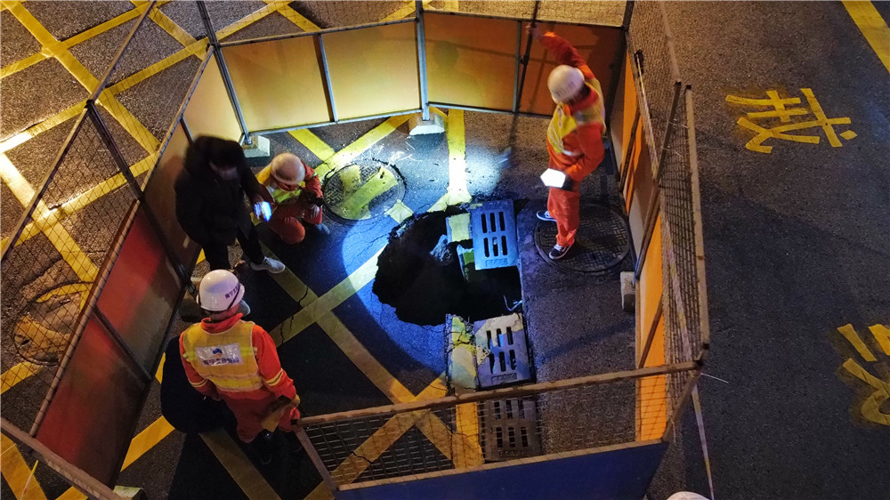 由于搶修位置地下管線復(fù)雜,施工場(chǎng)地狹窄,施工過(guò)程中,既要保障消防車(chē)輛正常出入,又要保護(hù)地下管線,同時(shí)陰雨連綿的天氣,給施工造成極大不便。搶險(xiǎn)人員想方設(shè)法,克服重重困難全力推進(jìn),經(jīng)過(guò)連夜奮戰(zhàn),第二天下午16時(shí),已完成塌陷井室修復(fù)、基坑灌注混凝土工作,目前正進(jìn)行混凝土養(yǎng)護(hù),預(yù)計(jì)2月19日前完成最后瀝青路面恢復(fù)工作。