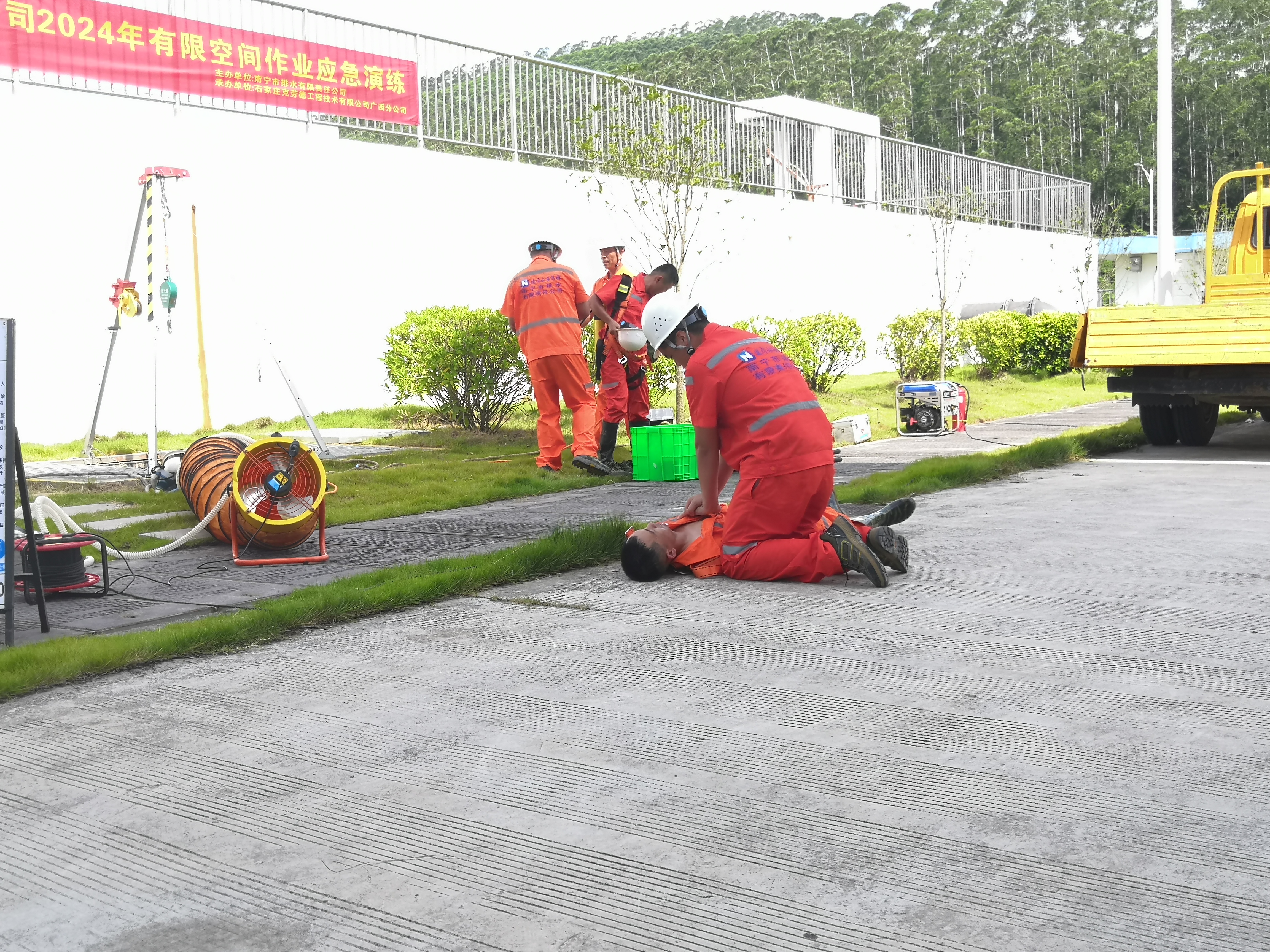 為進(jìn)一步提高進(jìn)入有限空間作業(yè)相關(guān)人員的安全生產(chǎn)意識(shí)和自我保護(hù)意識(shí),切實(shí)保障施工作業(yè)人員的生產(chǎn)安全,防止窒息、中毒等生產(chǎn)安全事故的發(fā)生,7月17日上午,市排水公司在南寧市江南區(qū)數(shù)字科技學(xué)院水質(zhì)凈化廠舉行有限空間作業(yè)事故應(yīng)急救援演練。