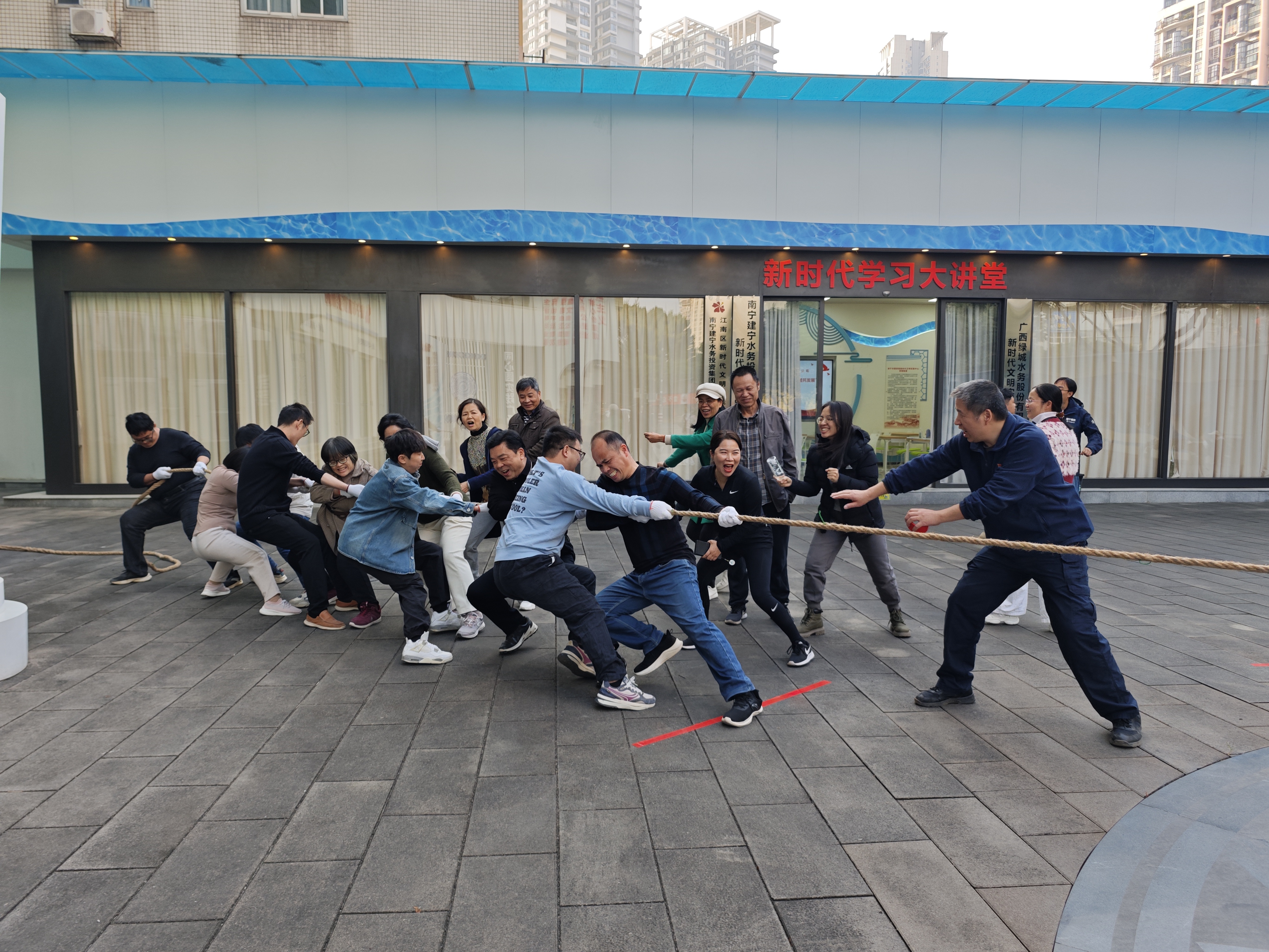 在民族體育趣味運(yùn)動(dòng)會(huì)環(huán)節(jié),兩個(gè)參賽隊(duì)伍展現(xiàn)出了高昂的斗志和團(tuán)隊(duì)協(xié)作精神。“共躍奮進(jìn)”跳大繩項(xiàng)目中,參賽隊(duì)員們默契配合,靈活敏捷,身姿矯健,每一次跳躍都凝聚著力量與美感。而在“聚力同心”拔河賽中,雙方隊(duì)伍更是全力以赴,選手們鉚足了勁,漲紅了臉,咬緊牙關(guān),拼盡全力。觀眾們也熱情高漲,自發(fā)組成拉拉隊(duì),為選手們吶喊助威。整個(gè)賽場(chǎng)活力滿滿,沉浸在一片歡聲笑語(yǔ)之中,充分展現(xiàn)了市排水公司干部職工頑強(qiáng)拼搏、奮發(fā)有為的精神風(fēng)貌,激發(fā)干部職工下一步以更加飽滿的熱情、更加昂揚(yáng)的斗志投入到各項(xiàng)工作中。